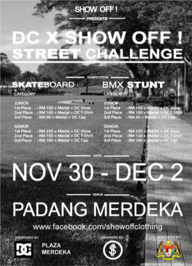 its quite a long time we havent heard an extreme sport competition held in Sarawak. However Show Off in collaboration with DC Shoes going to have a Skateboard and BMX competition in Padang Merdeka, Kuching, Sarawak this weekend!