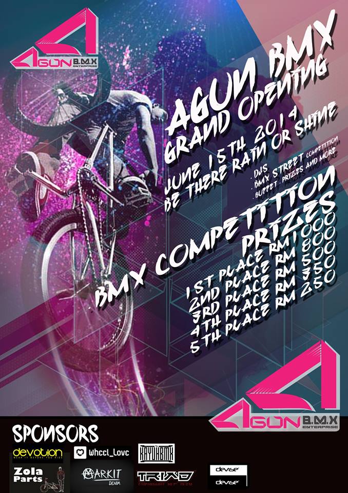 There will be a BMX Street competition on the launching event. The prize are pretty big for a local company like Agun. It seems like a good vibe for Sarawak BMX scene.