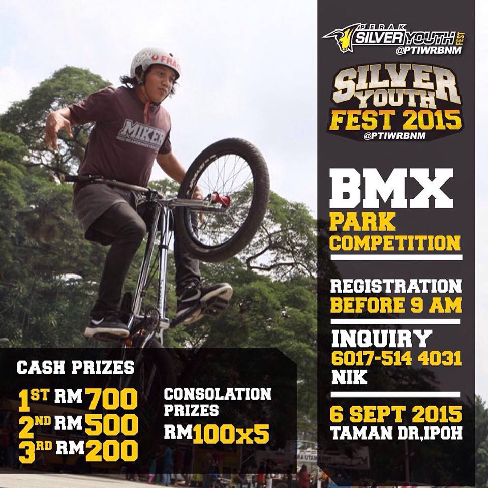 Silver Youth Fest 2015 Post author:iwan Post published:August 25, 2015 Post category:Events Post comments:0 Comments BMX Park Competition 6 September 2015 Taman DR, Ipoh, Perak Prizes 1st – RM700 2nd – RM500 3rd – RM300 4th – RM200 5th – 10th – RM100 You Might Also Like Healthy One BMX Street & Flatland Competition November 30, 2016 FISE World Series Malaysia – Langkawi Island – Video teaser! December 1, 2015 Sempoi session photos June 3, 2015 Leave a Reply Cancel replyCommentEnter your name or username to comment Enter your email address to comment Enter your website URL (optional) Save my name, email, and website in this browser for the next time I comment.