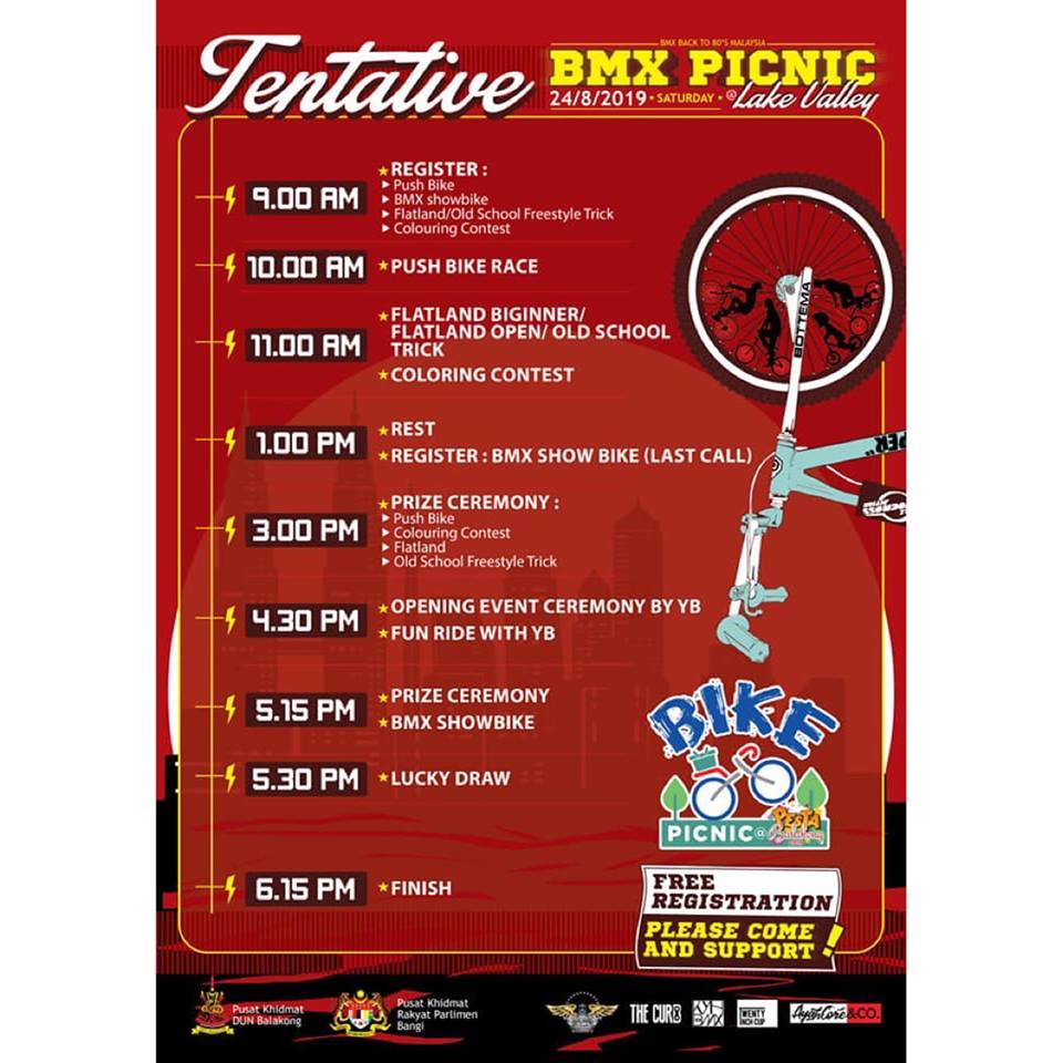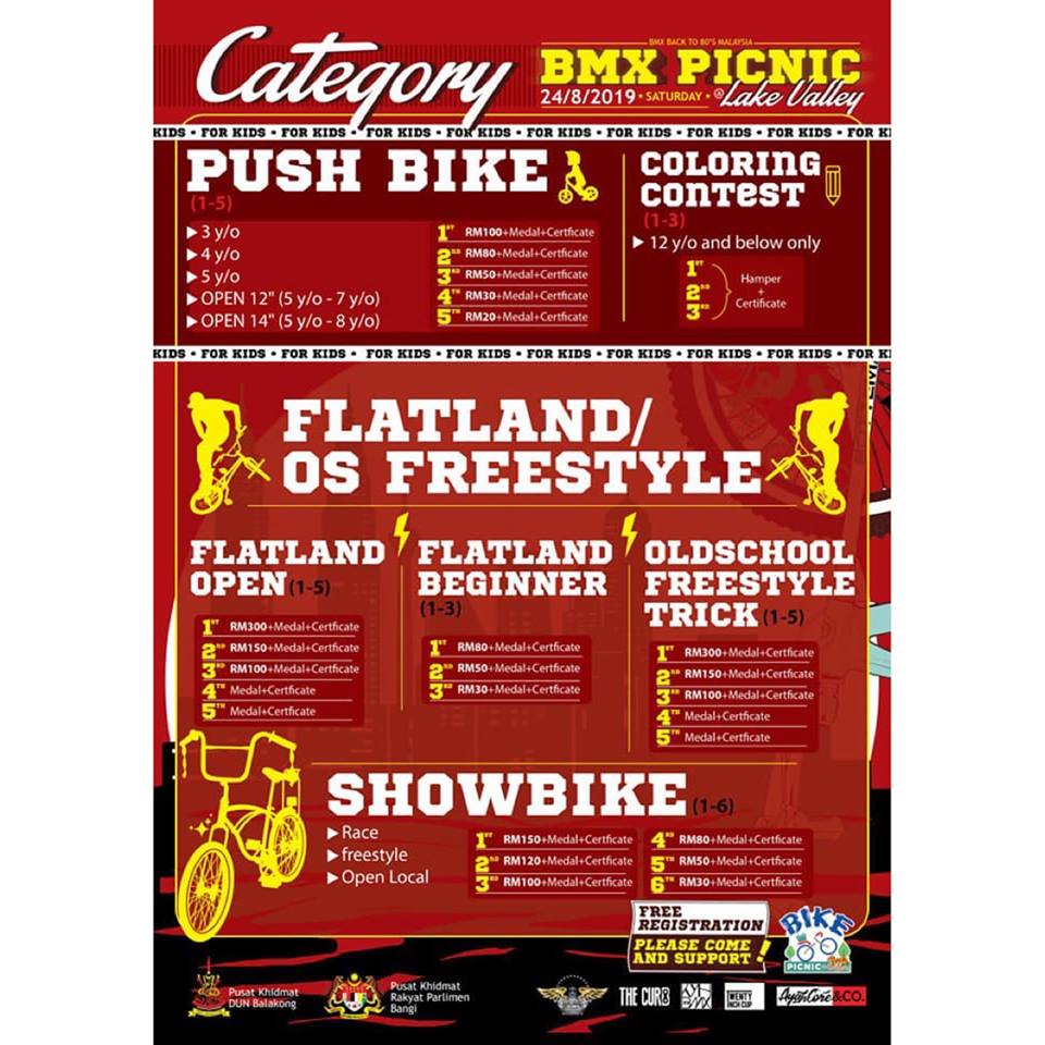 BMX Picnic event organize by Back to 80’s will held a BMX Flatland competition beside their main OSBMX event located at Lake Valley, Bandar Tun Hussein Onn.