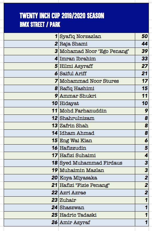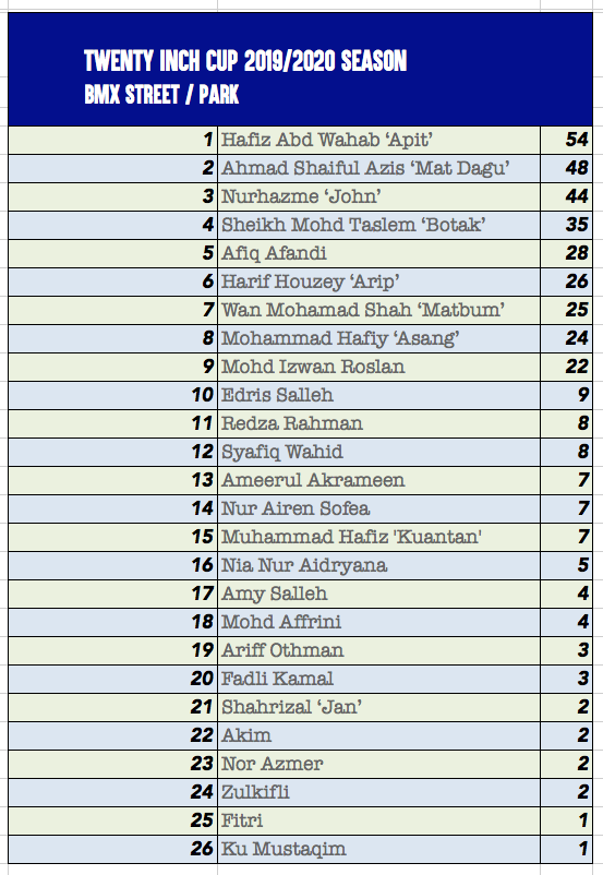 TIC CURRENT STANDING Post author:iwan Post published:January 14, 2020 Updated after BMX Langgar competition by TODAK X Tempatan Fest competition Updated after BMX Langgar competition by TODAK X Tempatan Fest competition You Might Also Like BMX 101 January 31, 2023 Le Tour De Langkawi 2020 January 24, 2020 It’s a SUNNY day March 29, 2013