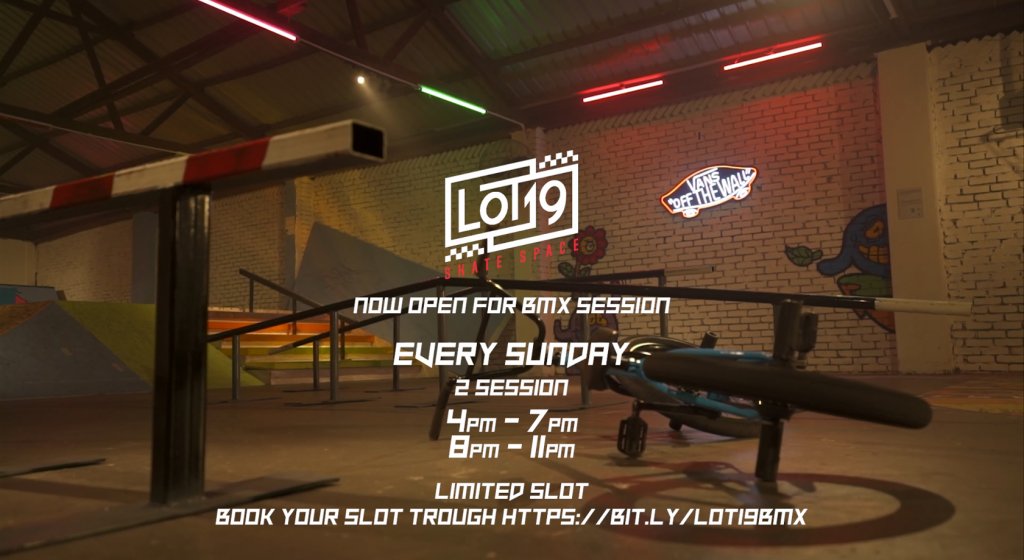 Good news! Lot 19 Skate Space is now open for BMX session every Sunday.