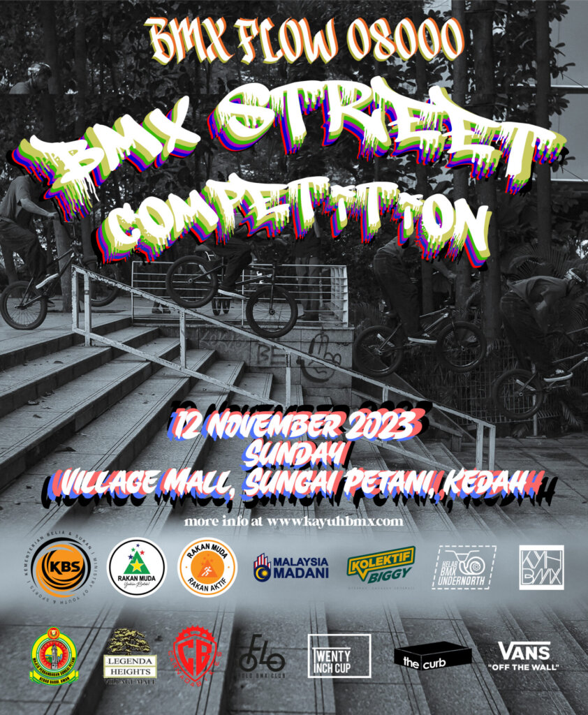BMX Street and BMX Flatland competition will be held at VIllage Mall, Sungai Petani, Kedah this coming 11 and 12 November 2023.