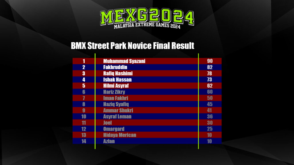 MEXG2024 Result Post author:iwan Post published:March 4, 2024 Post category:Events / News . Congratulation to all participant . . . . . . . . . . Tags: crossmove, jbs, mexg2024 You Might Also Like Ramp Up Festival, Penang December 22, 2018 Kejohanan X-Games 2019 Zon Tengah photos & results May 15, 2019 X-Fest March 18, 2015